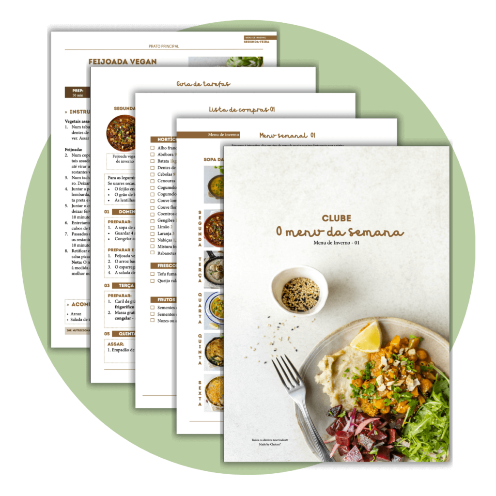 Menus semanais de base vegetal que te ajudam a comer melhor, poupar dinheiro e a saber exatamente o que cozinhar, de forma simples e organizada!
